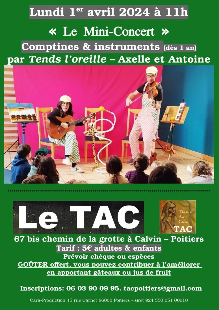 - 1 Avril 2024 – 11h00 – POITIERS Théatre Au Clain (TAC)