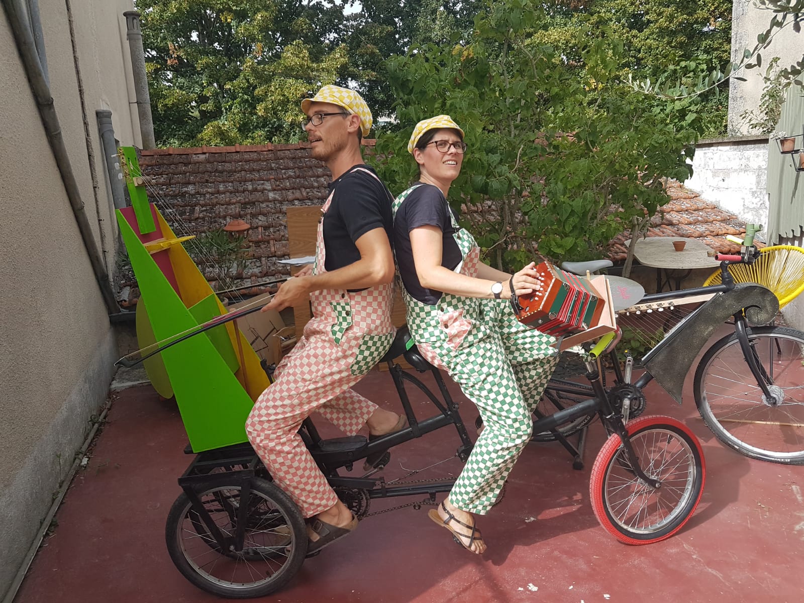 Dans une ambiance joyeuse et colorée, les scènes se déroulent sur un décor d’atelier de bricolage où les vélos ont une place centrale et se métamorphosent en vélos-musicaux.