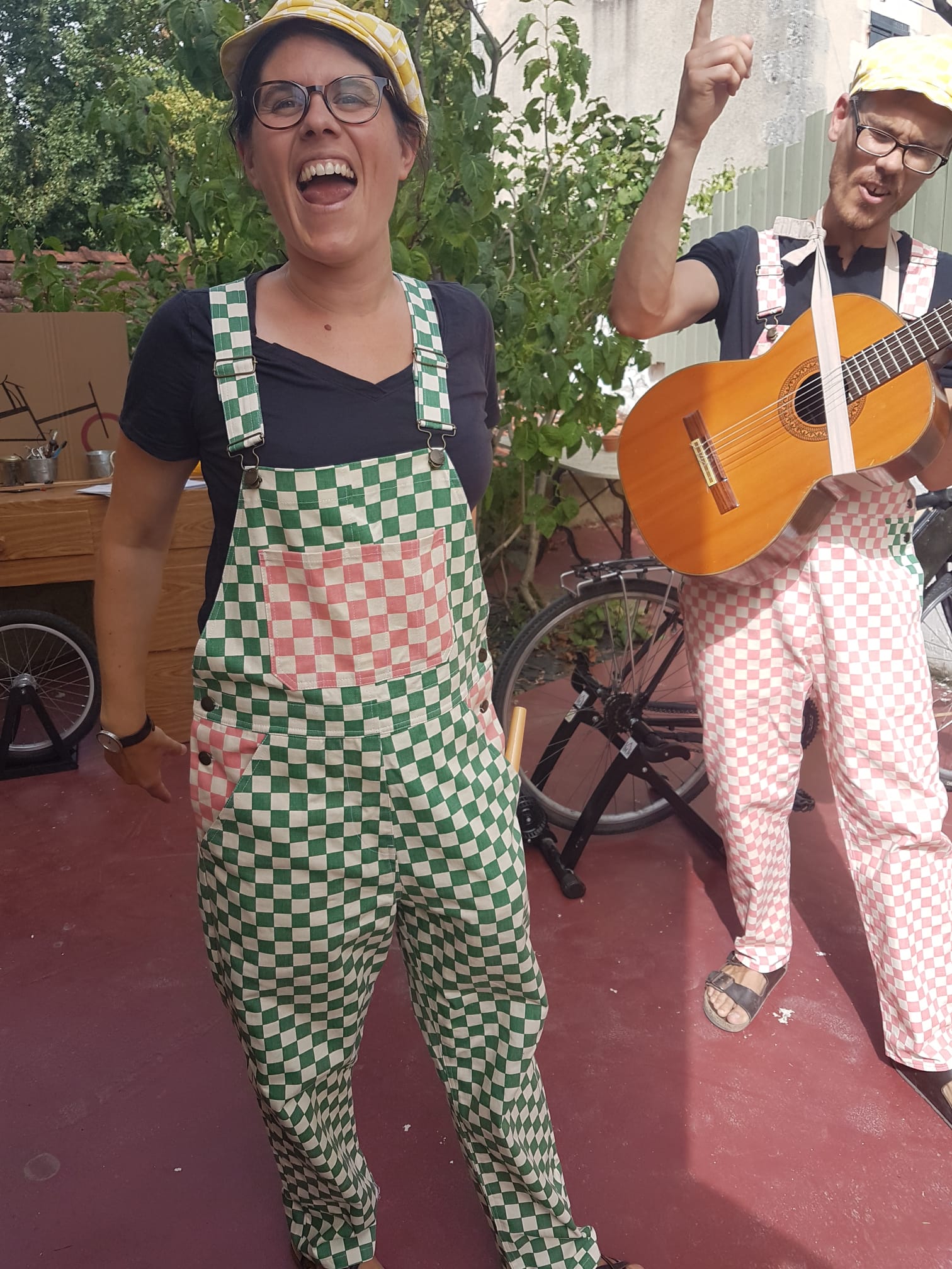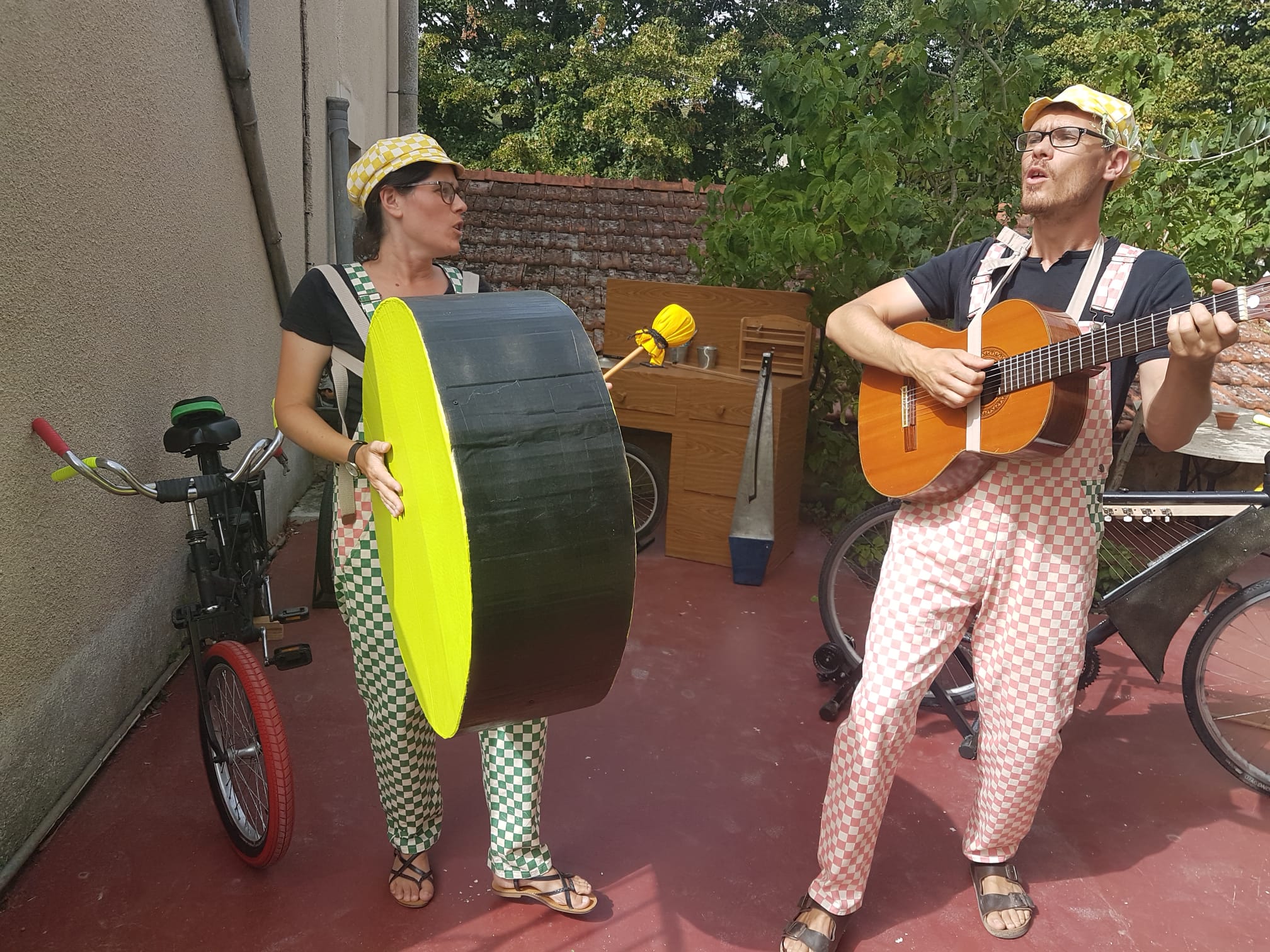 Ce spectacle d’une demi-heure environ est un duo dans lequel Axelle et Antoine, un frère et une sœur, chantent, dansent et explorent les sons de nombreux instruments et objets du quotidien.